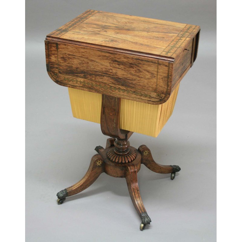 REGENCY ROSEWOOD AND BRASS INLAID WORK TABLE,