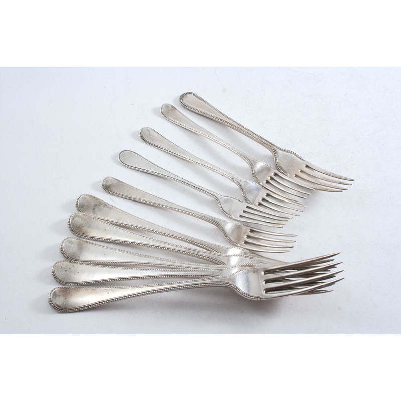 *SIX ASSORTED TABLE FORKS AND FOUR DESSERT FORKS with beaded decoration, various dates & makers (George III - modern); 18.75 oz (10)