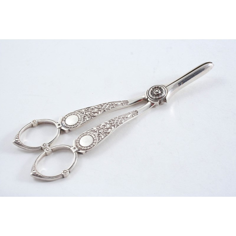 A PAIR OF VICTORIAN VENETIAN PATTERN GRAPE SHEARS with inset steel blades, maker's mark "TP&S", Birmingham 1882; 6.3" (16 cms) long; 2.8 oz