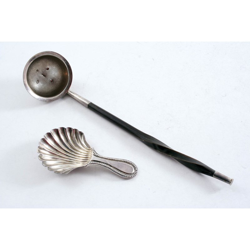 with a fluted shell bowl & a bead pattern stem, by William Abdy, London 1787 and a Victorian Scottish toddy ladle with a whalebone handle, by McKay & Chisholm, Edinburgh 1867; the latter 7.4" (18.8 cms) long; 0.48 oz weighable silver (2)