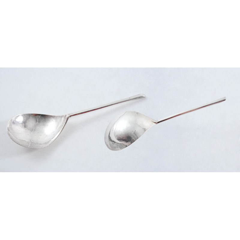 with a tapering stem & a deeply curved bowl with a rudimentary "V" rattail (a trefoil, or something similar) unascribed, 1500-1550; 6.15" (15.5 cms) long; 0.96 oz