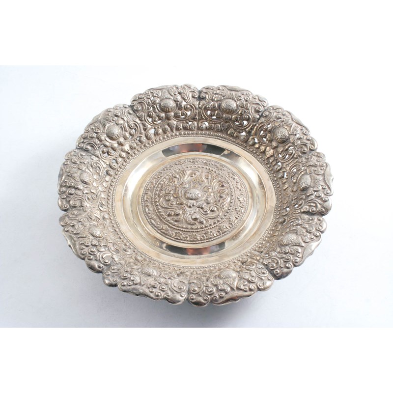 AN EASTERN EMBOSSED DISH on ball feet with a petal-shaped outline, early/mid 20th century; 8.4" (21.2 cms) diameter; 8.5 oz