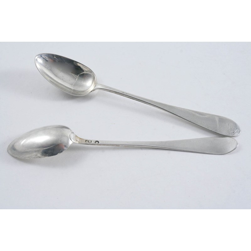 with pointed ends, possibly by Alexander Ross of Dingwall (AR, sunburst) 1780-90; 5.45" (13.8 cms) long; 0.83 oz (2)