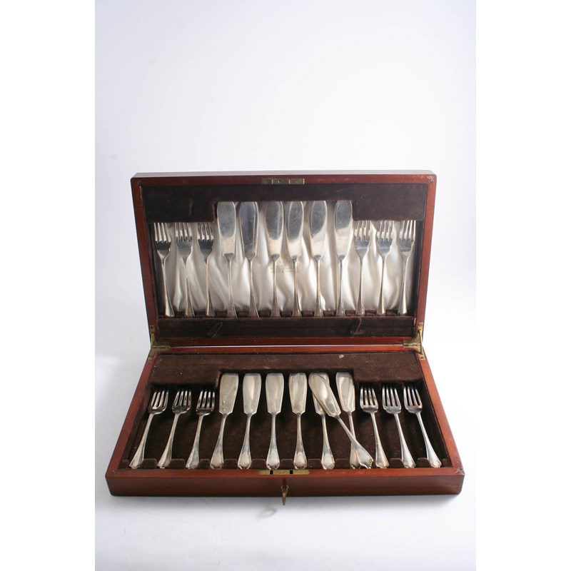 A MODERN CASED SET OF TWELVE PAIRS OF FISH KNIVES & FORKS (and one extra fish knife) by Mappin & Webb, Sheffield 1927/28; the case 15" (38 cms) long; 29.6 oz