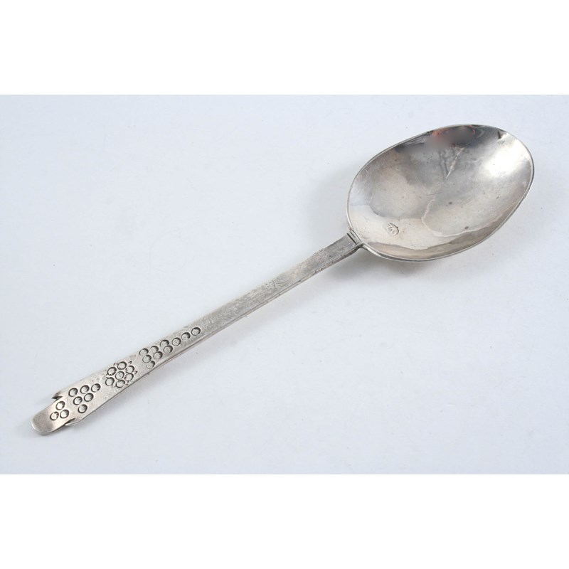 A CHARLES II ASCRIBED WEST COUNTRY "SHADED ROUNDELS" TREFID SPOON pricked "AR" over "AC" over "1672", maker's mark struck once in the bowl & thrice on the back of the stem, by William Lewis of Wincanton c.1672; 7.25" (18.3 cms) long; 0.95 oz