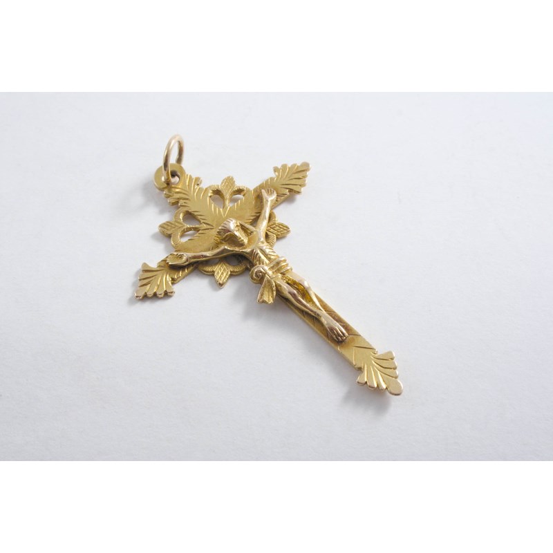 A SMALL GOLD CRUCIFIX PENDANT with engraved decoration, unmarked, probably late 18th century; 2.25" (5.6 cms) long; 0.28 oz