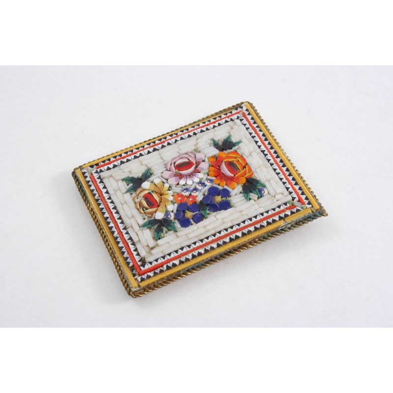 A MICROMOSAIC FLORAL PLAQUE in a gilt-metal frame, probably late 19th/early 20th century; 2.25" (5.5 cms) long