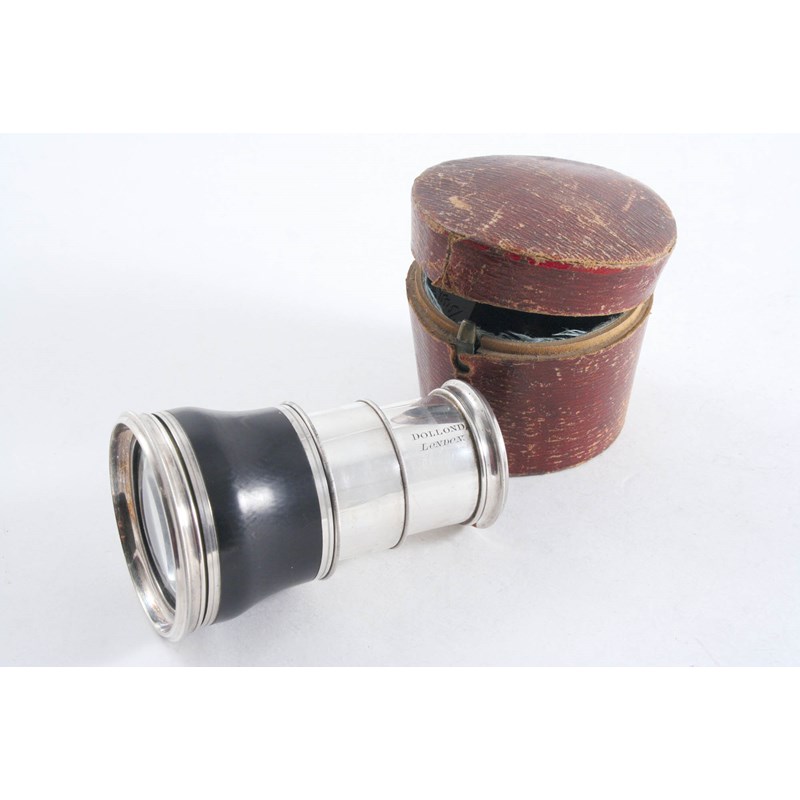 AN EARLY 19TH CENTURY MOUNTED IVORY, TWO-DRAWER MONOCULAR by "DOLLOND, LONDON" (in original fitted case); 3.5" (9 cms) long (extended)