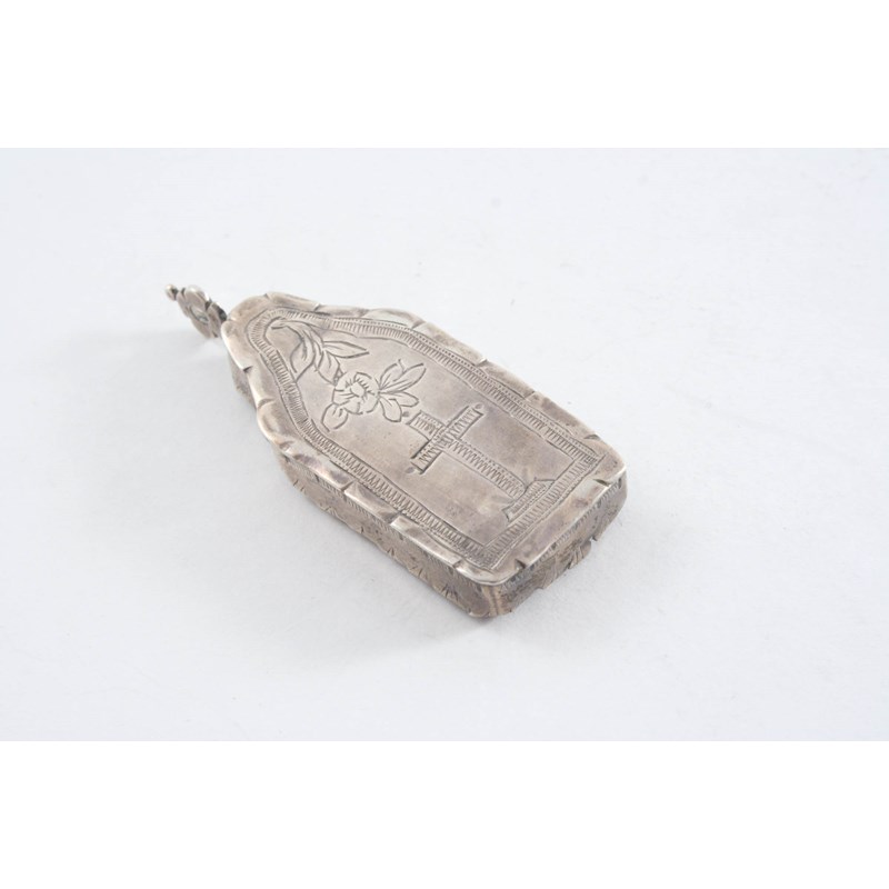 with a lappet border, retaining a glass panel & containing a small Chinese (Macau) carved ivory figure, the reverse engraved with a cross & flowers, unmarked, probably Indo-Portuguese, late 18th / early 19th century; 2.3" (6 cms) high