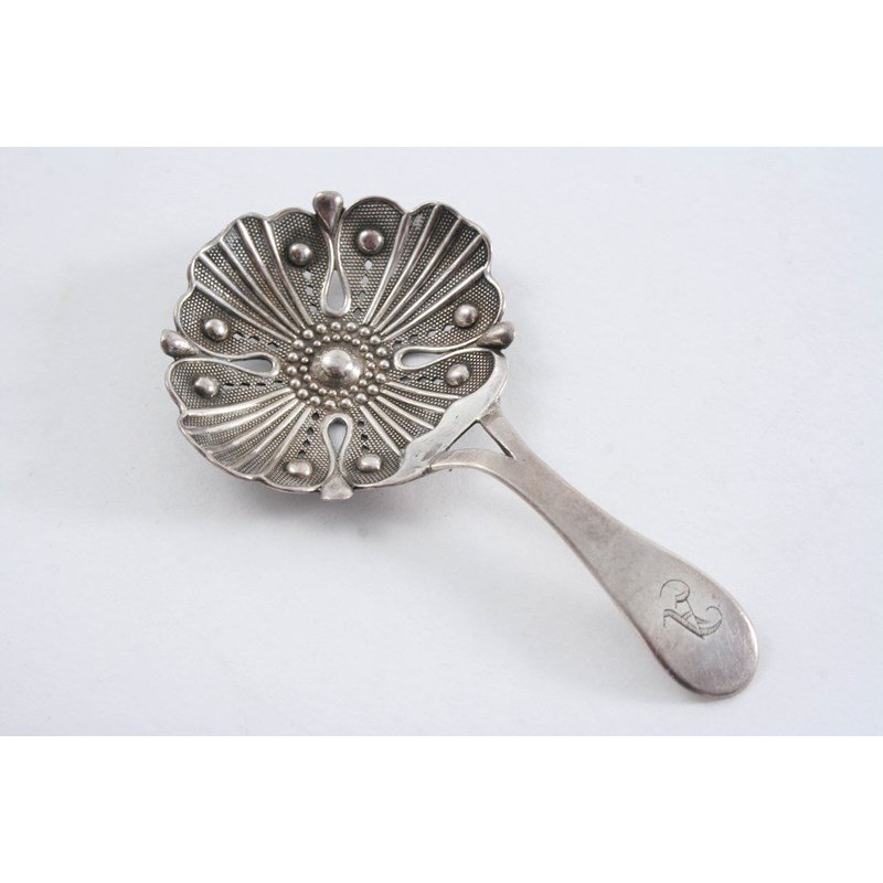with a bifurcated stem, the bowl stamped & pierced to resemble an anenome flower head, initialled "A", by Joseph Taylor, Birmingham 1809; 3" (7.25 cms) long; 0.27 oz