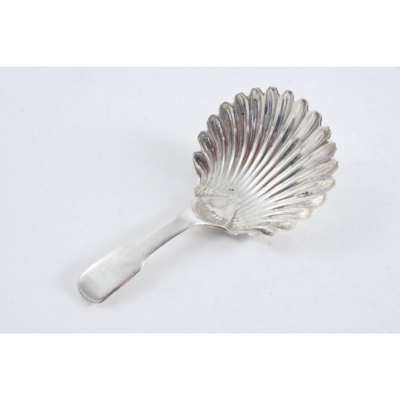 A GEORGE III SCOTTISH CADDY SPOON with a Fiddle terminal & a fluted shell bowl, by John Ziegler, Edinburgh 1811; 3.5" (9 cms) long; 0.4 oz