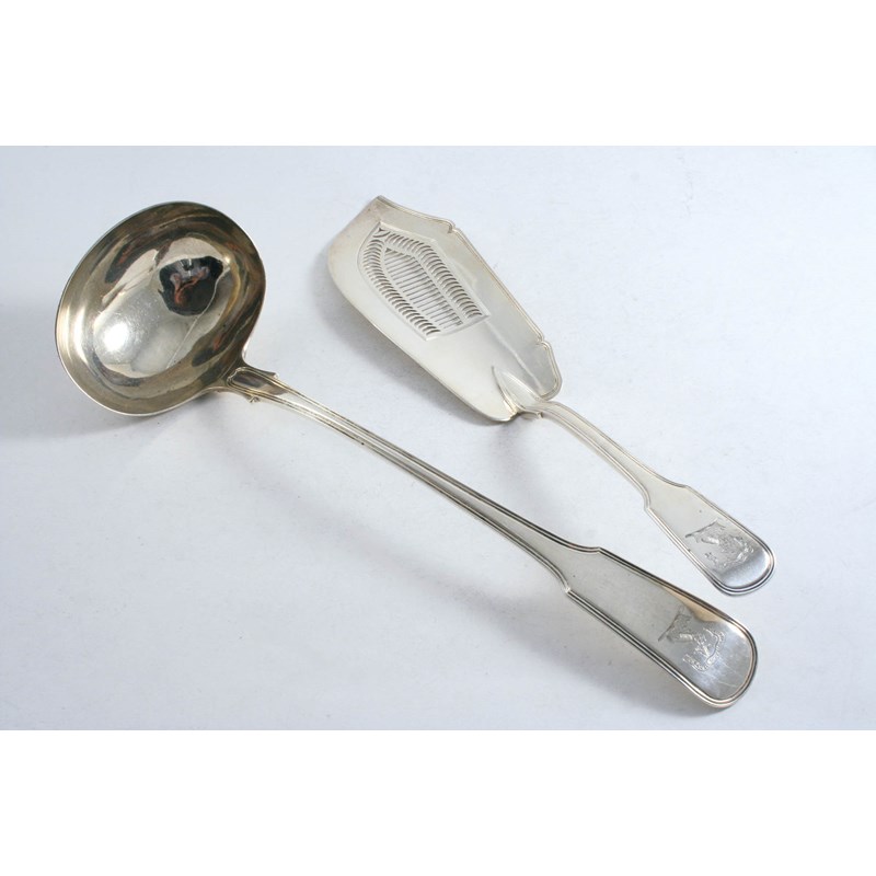 (single struck) and matching fish slice, by William Bateman, London 1815, both crested to match; the slice 12.25" (31 cms) long; 12.75 oz (2)