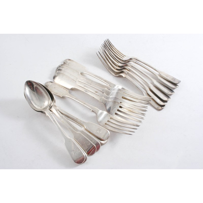 A set of six table forks, six dessert forks & six dessert spoons, all initialled "WEL", by Elizabeth Eaton, London 1852/53; 34 oz (18)