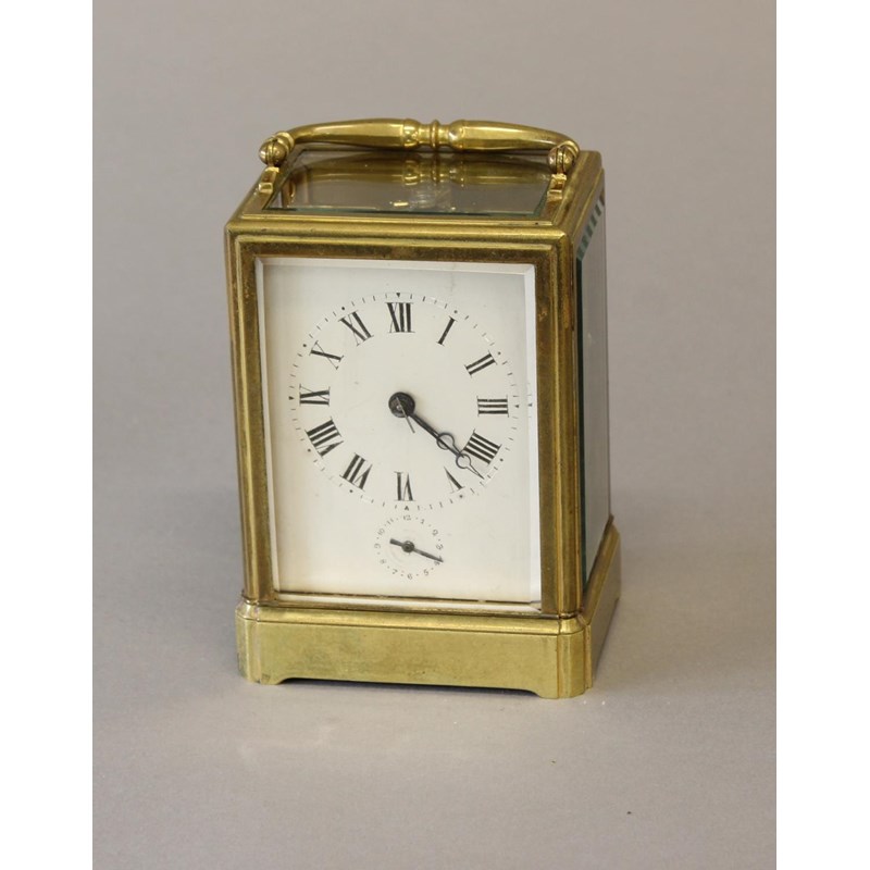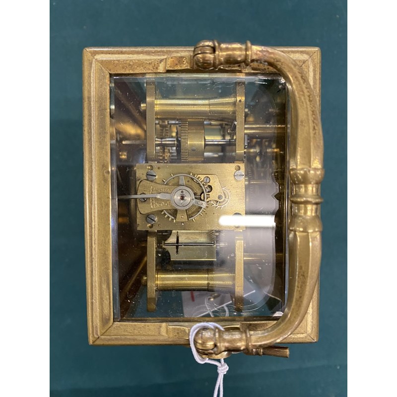 A BRASS CASED CARRIAGE CLOCK BY MOTTU OF PARIS.