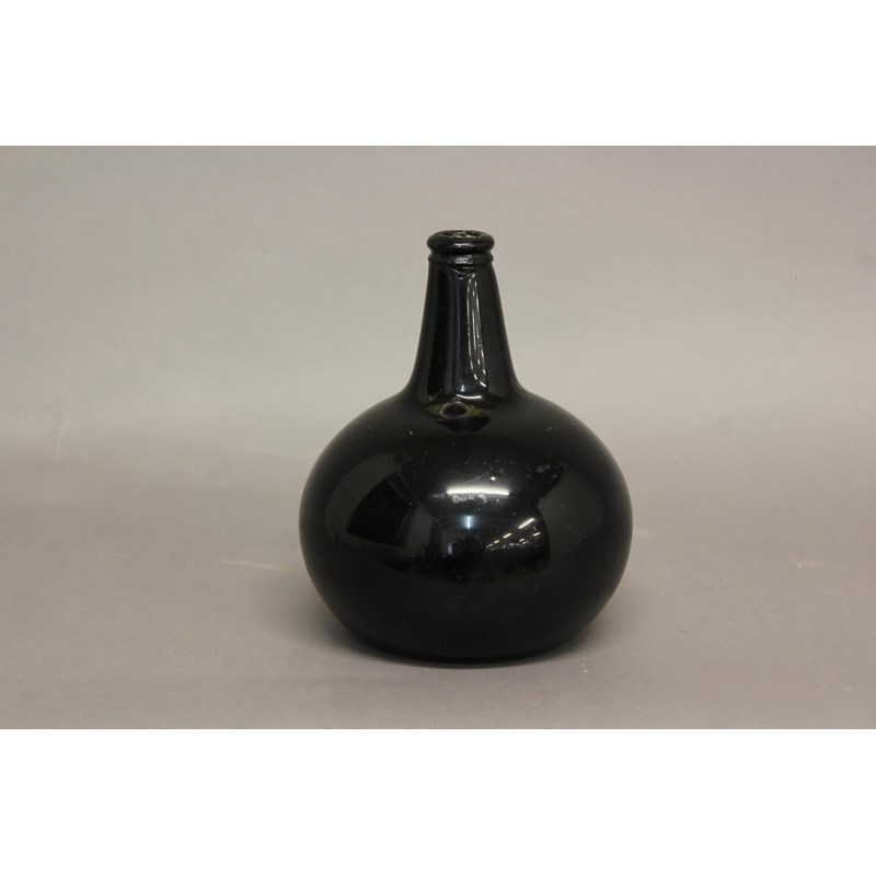 A LARGE 19TH CENTURY GREEN GLASS WINE BOTTLE. With a straight sided tapering neck and bulbous body, the underside with indented base, drilled for use as a lamp base, 29cm high 21cm wide.
