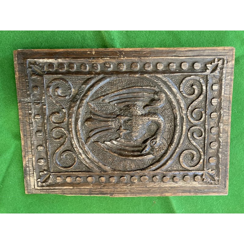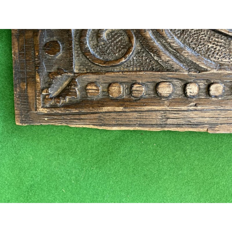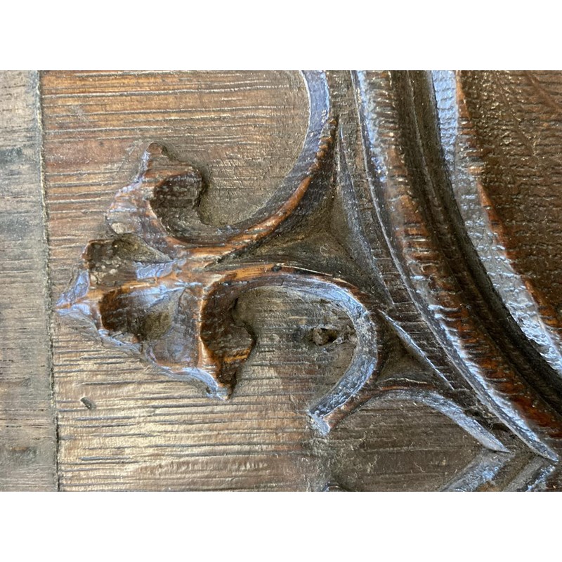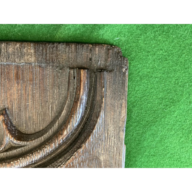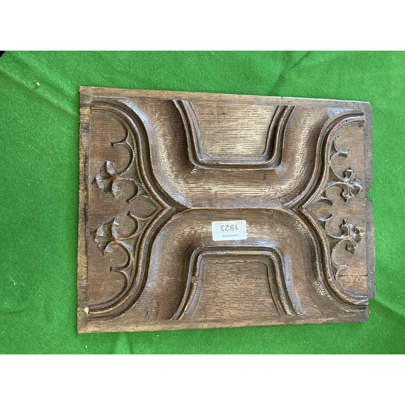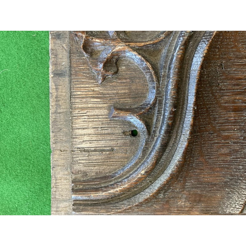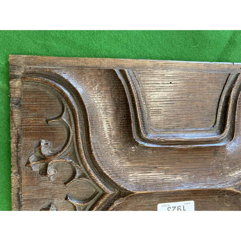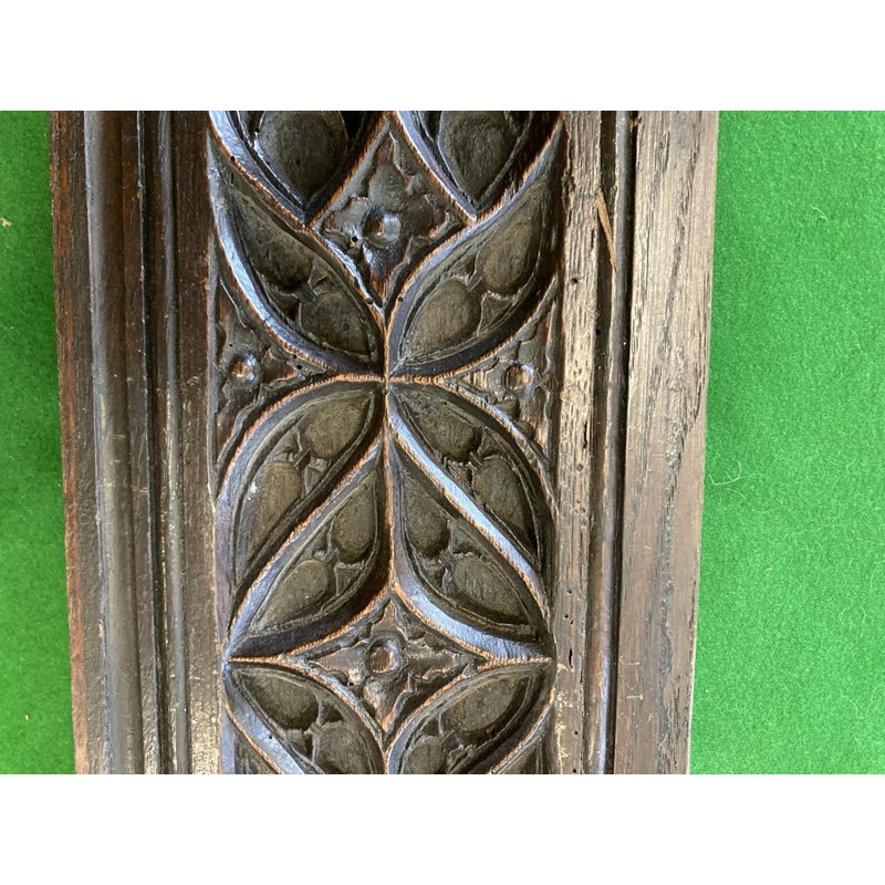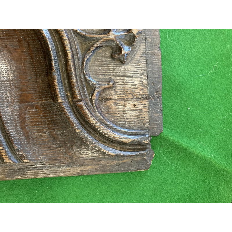 A pair of rectangular panels with gothic linen fold type carved panels with Gothic arches and trefoil foliage, 33.5 x 25cm, a smaller panel carved with a swan, 27x 19cm and a panel of Gothic tracery. 41 x 16cm. (4)