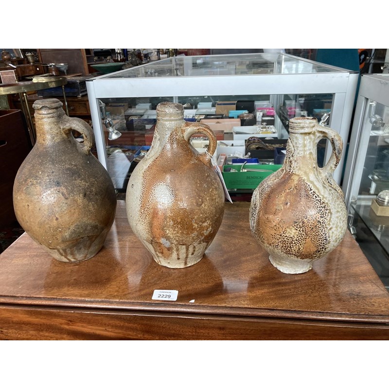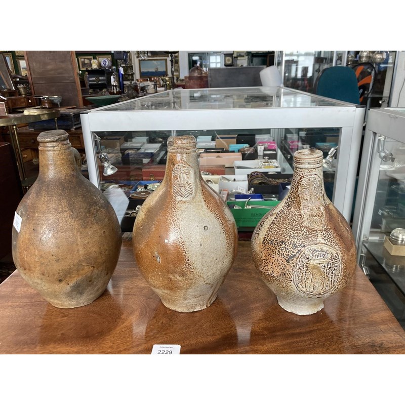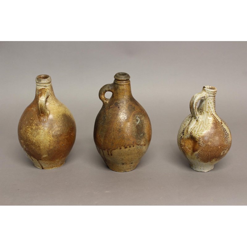 TWO BELLARMINE TYPE BOTTLES AND ANOTHER.