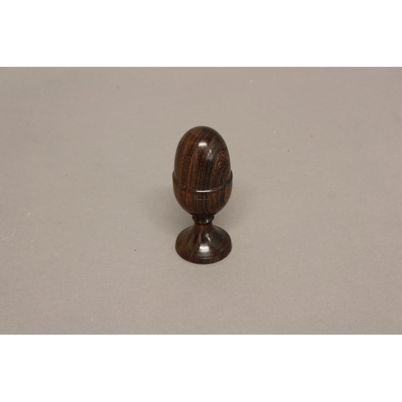 A LATE 19TH CENTURY NOVELTY ROSEWOOD EGG CUP. A turned rosewood egg in an egg cup form, 11cm high 4cm wide.
