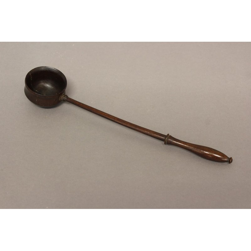 AN EARLY 19TH CENTURY TREEN PUNCH LADLE. With a slender handle with shaped end and straight shaft with bowl shaped body, 30cm.