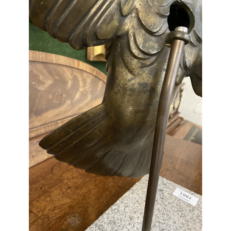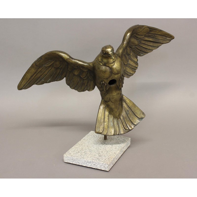 The dove in flight with wings out stretched, originally a finial for a font cover. Northern European, probably Dutch, mounted from behind on a stone base, the bird with 57cm wingspan, 31cm high, the stone base 20.5 x 15cm.