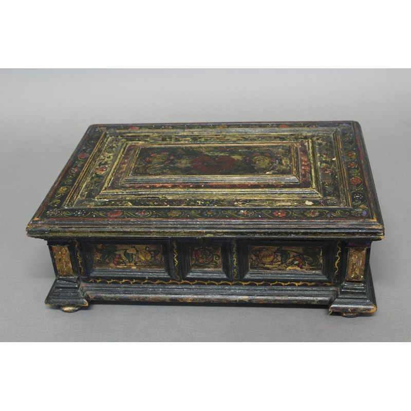 A LATE 17TH OR EARLY 18TH CENTURY PAINTED CONTINENTAL TABLE BOX.