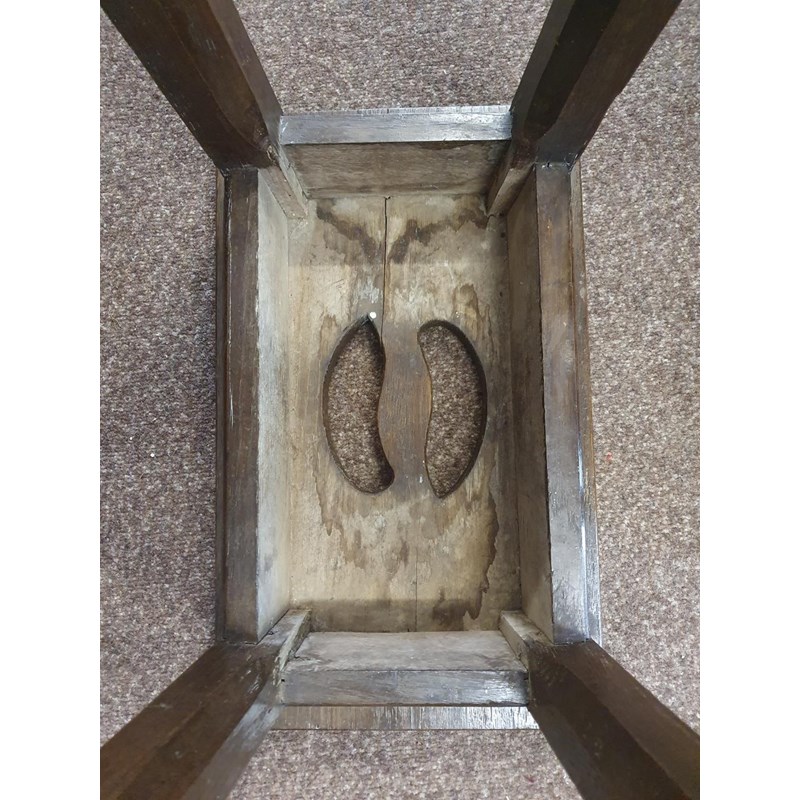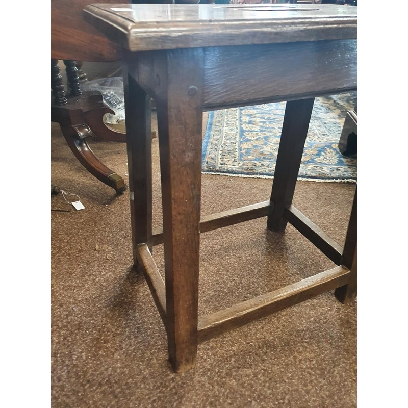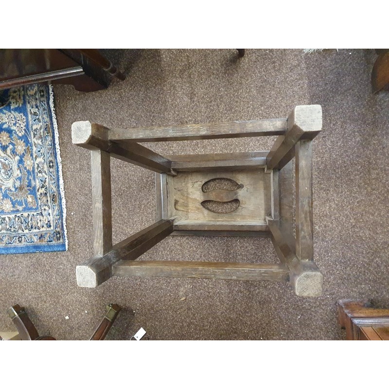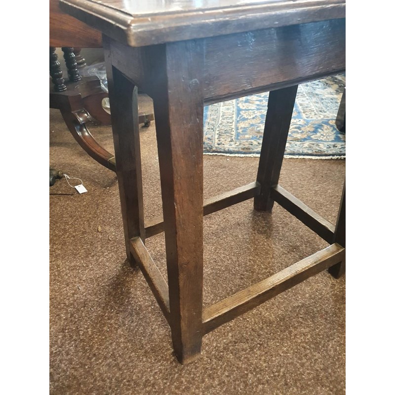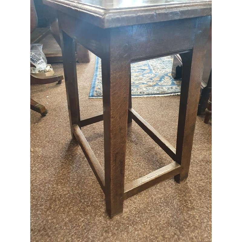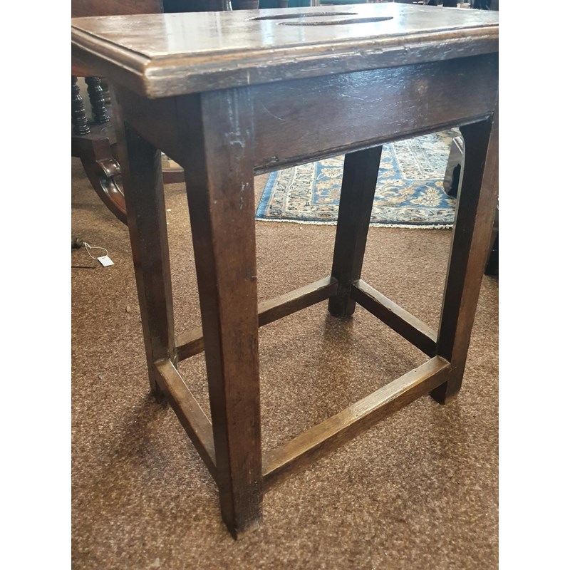 With rectangular tops with moulded borders and pierced hand grips to the centre, on undecorated splayed square section legs and stretchers, probably West Country manufacture, 55cm high, the tops 48 x 29cm. (2)