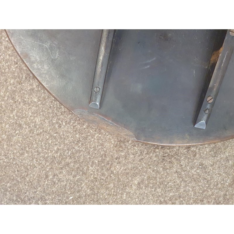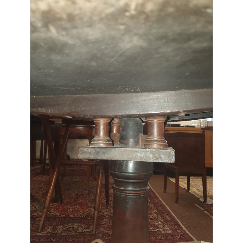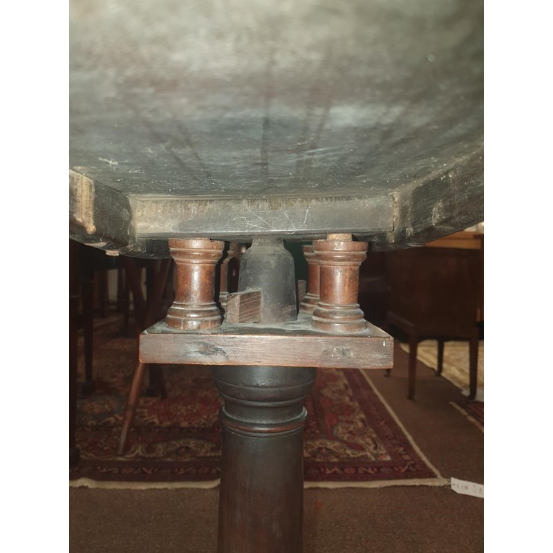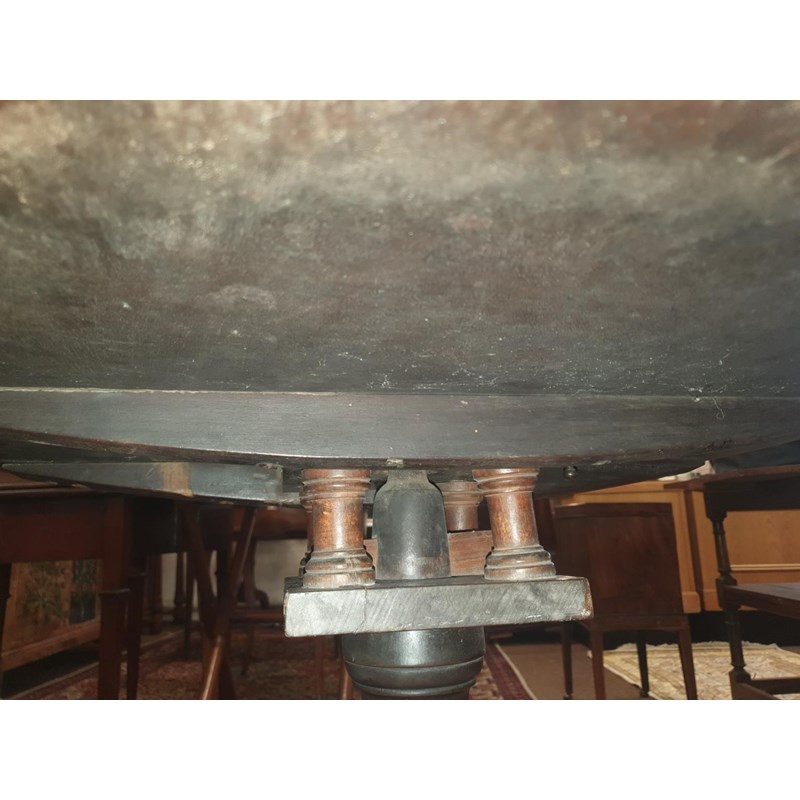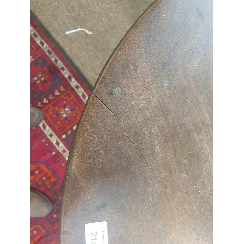 With a circular one piece revolving top on a 'birdcage' base with four turned uprights, on a turned tapering column and three down swept cabriole legs with pad feet. 69cm diameter, 66cm high.