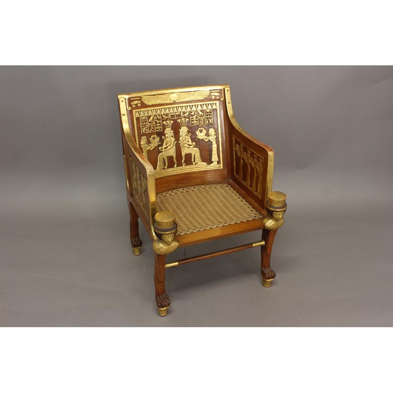 A REPRODUCTION EGYPTIAN THRONE CHAIR.