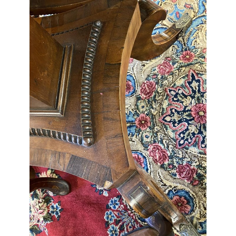 A REGENCY ROSEWOOD BRASS INLAID BREAKFAST TABLE.