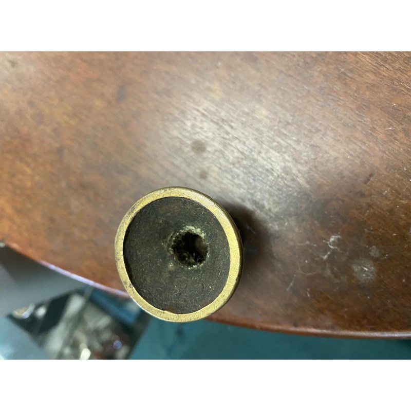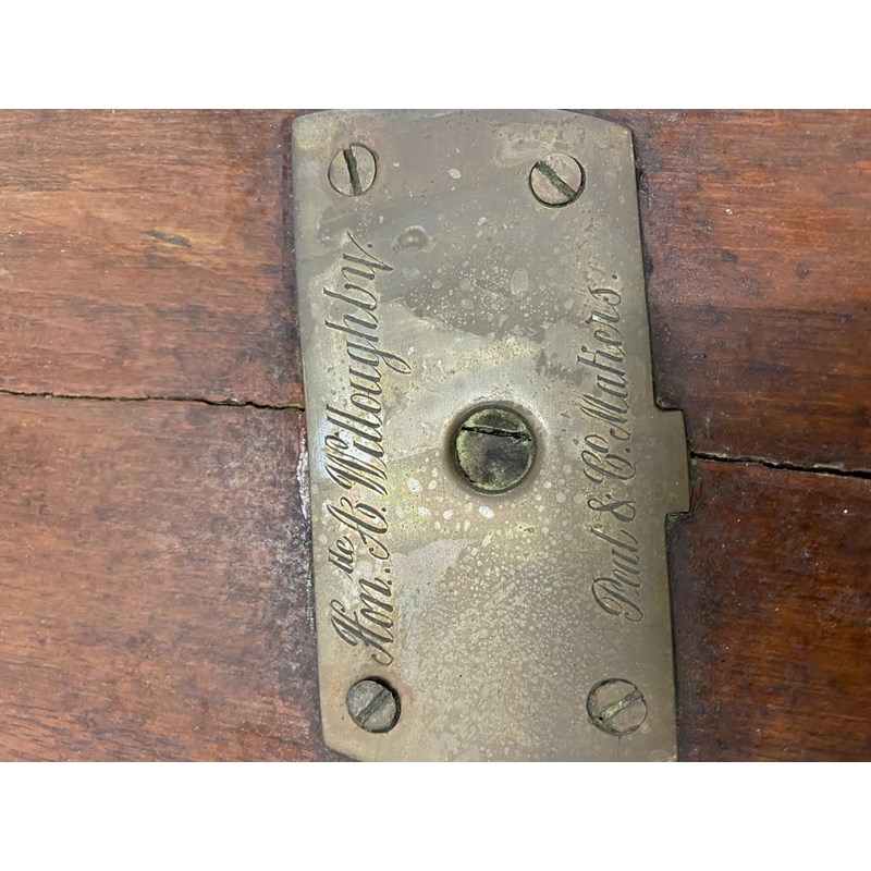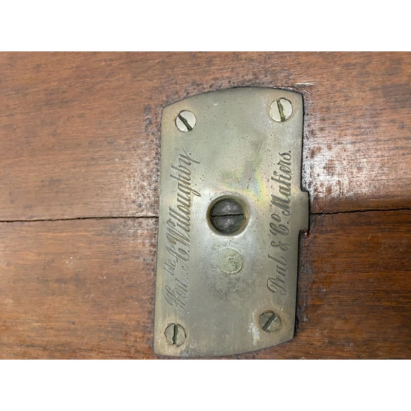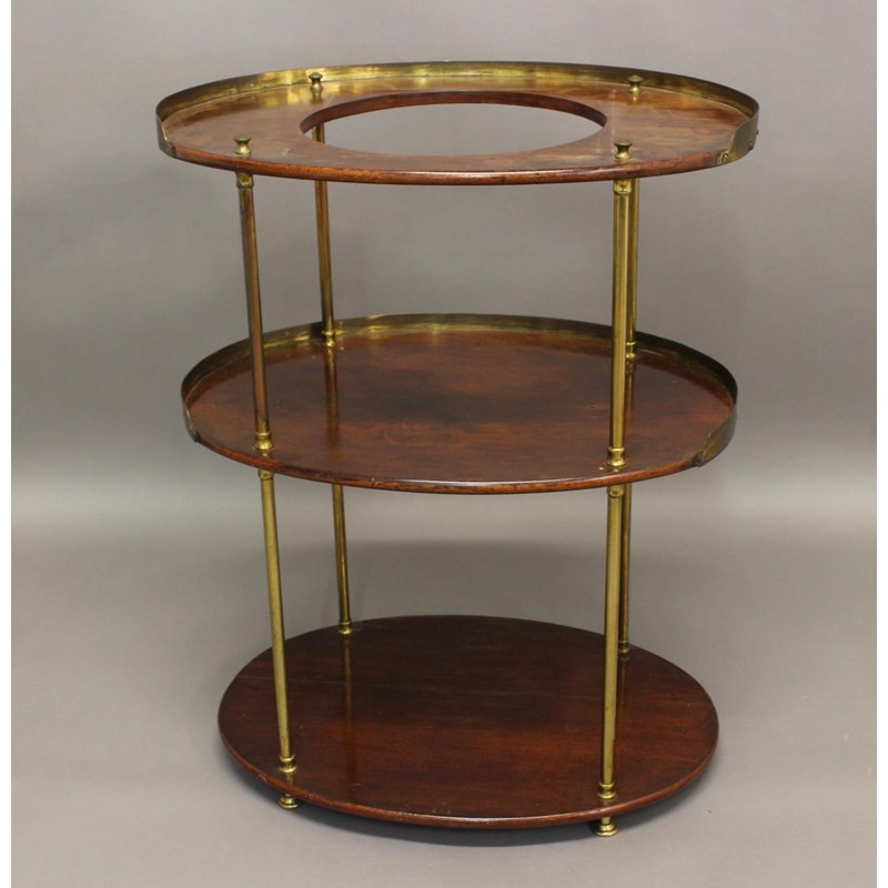 A VICTORIAN CAMPAIGN WASHSTAND the three oval mahogany tiers on brass supports; 70 x 87 cms
