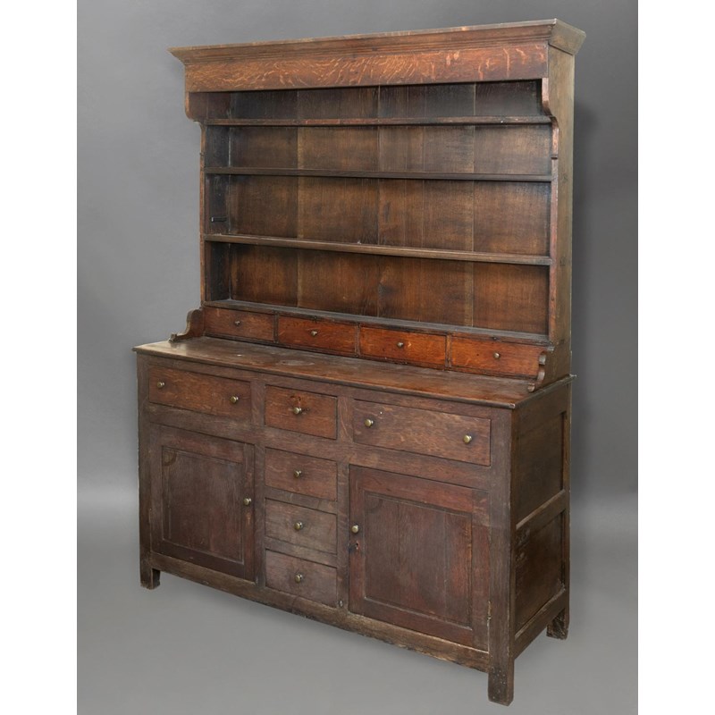 the back with open shelves and small drawers, the base with drawers & cupboards; 18/19th century and later, 197cm high, 152cm wide and 51cm deep.