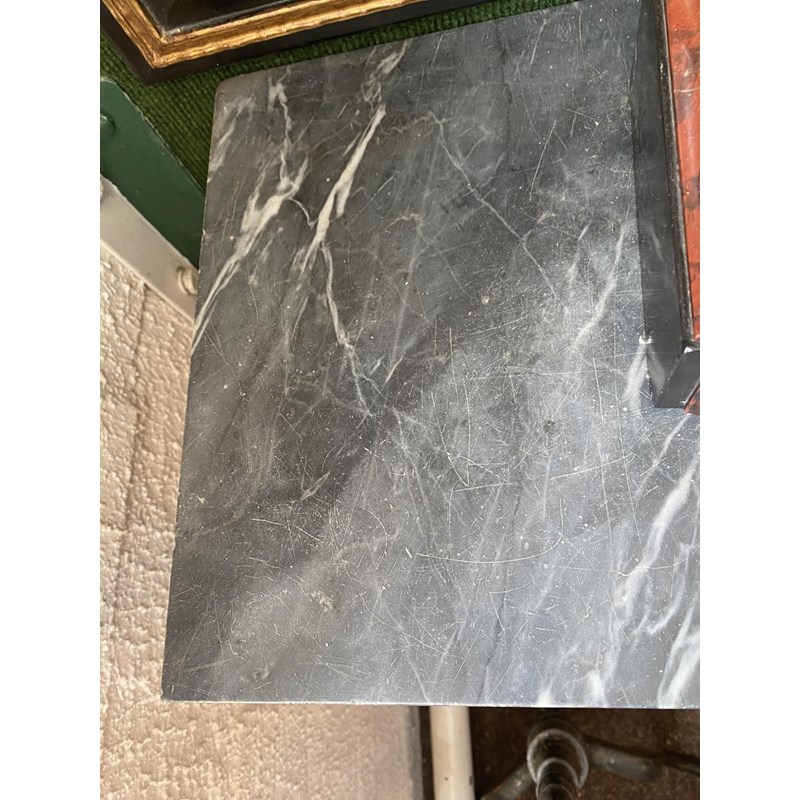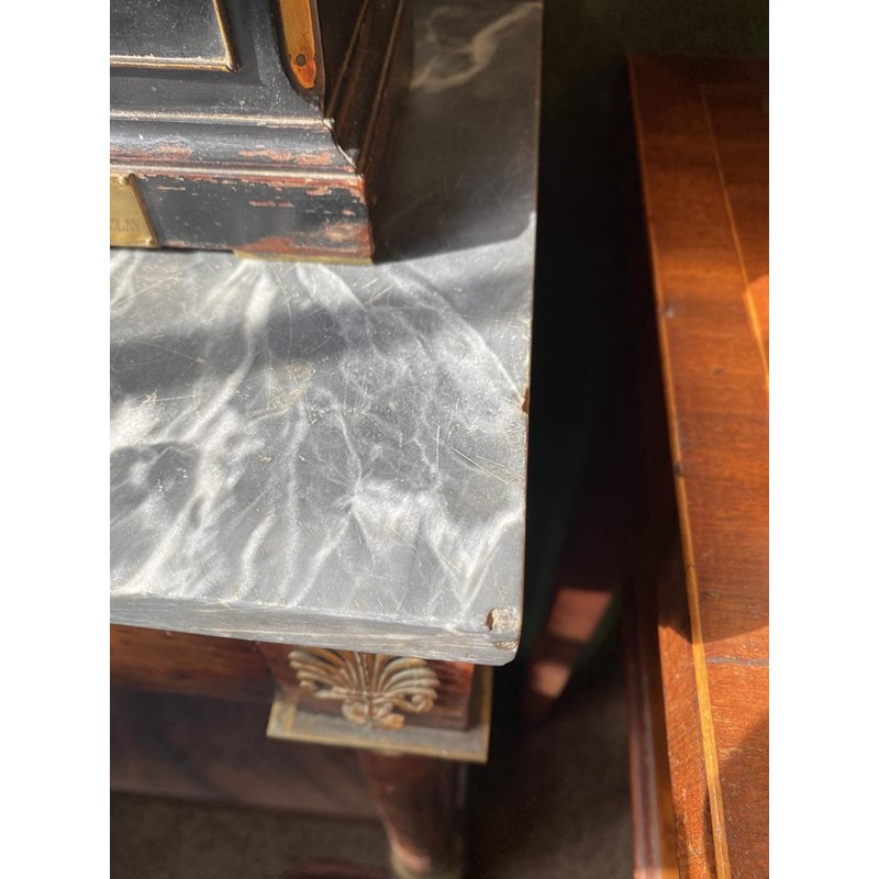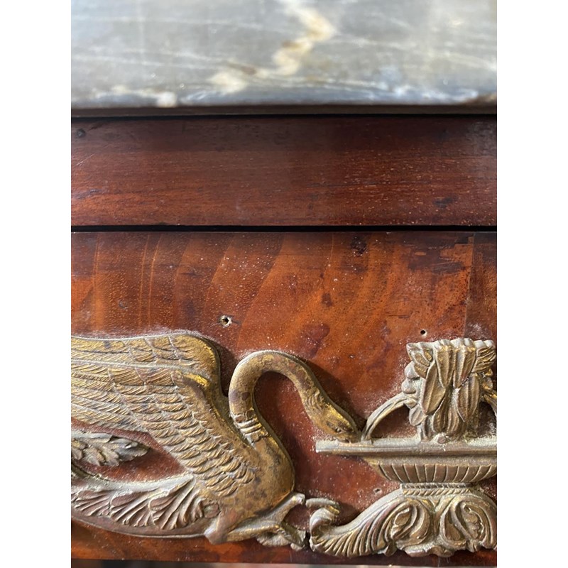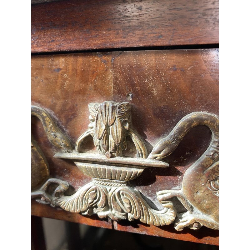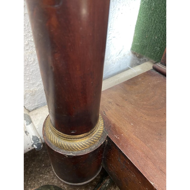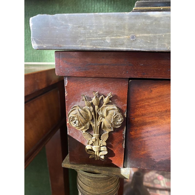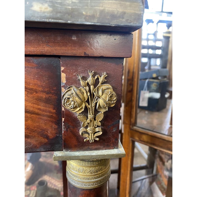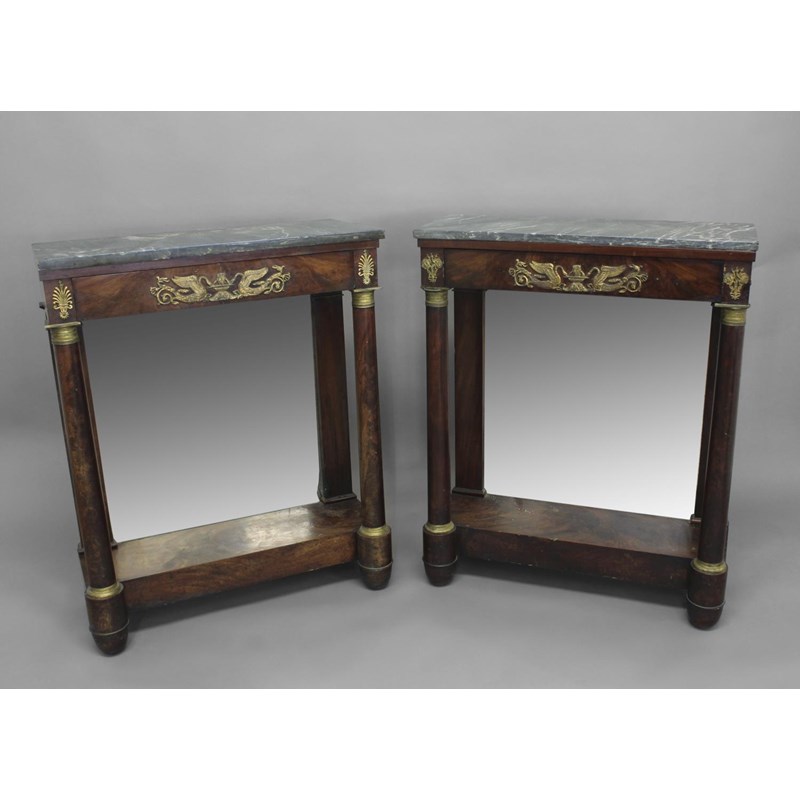 A PAIR OF FRENCH EMPIRE MARBLE TOPPED CONSOLE TABLES.