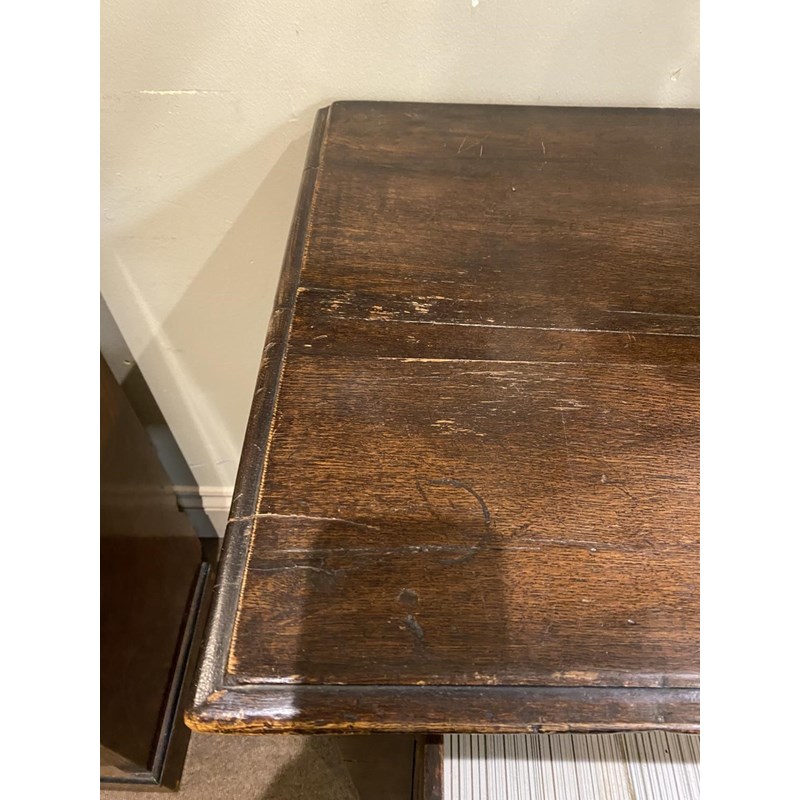 AN OAK THREE DRAWER DRESSER BASE.