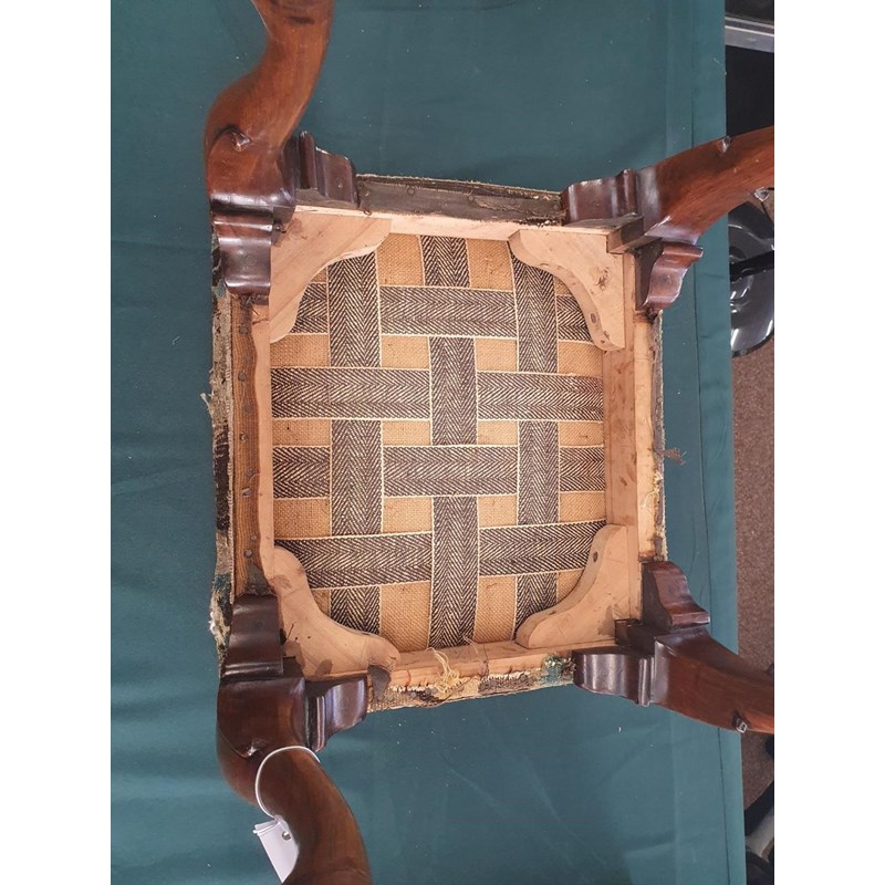 A FOOTSTOOL OF GEORGE I DESIGN with walnut cabriole legs and pointed pad feet, tapestry top; 49 x 42 cms