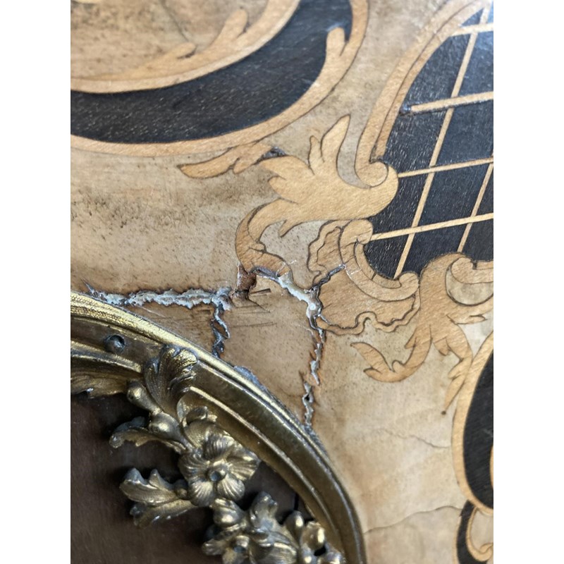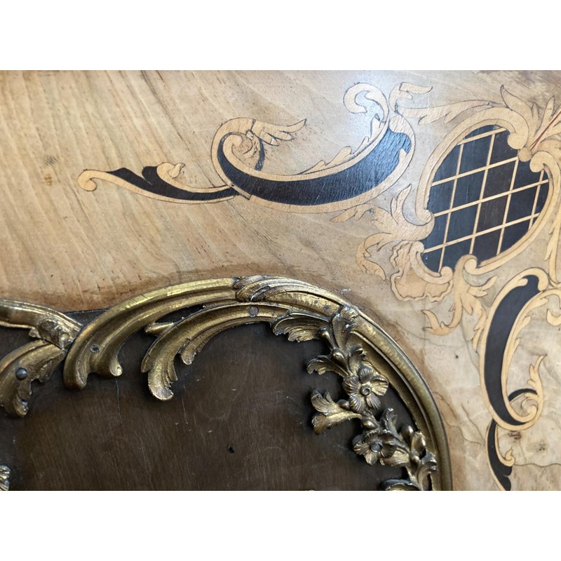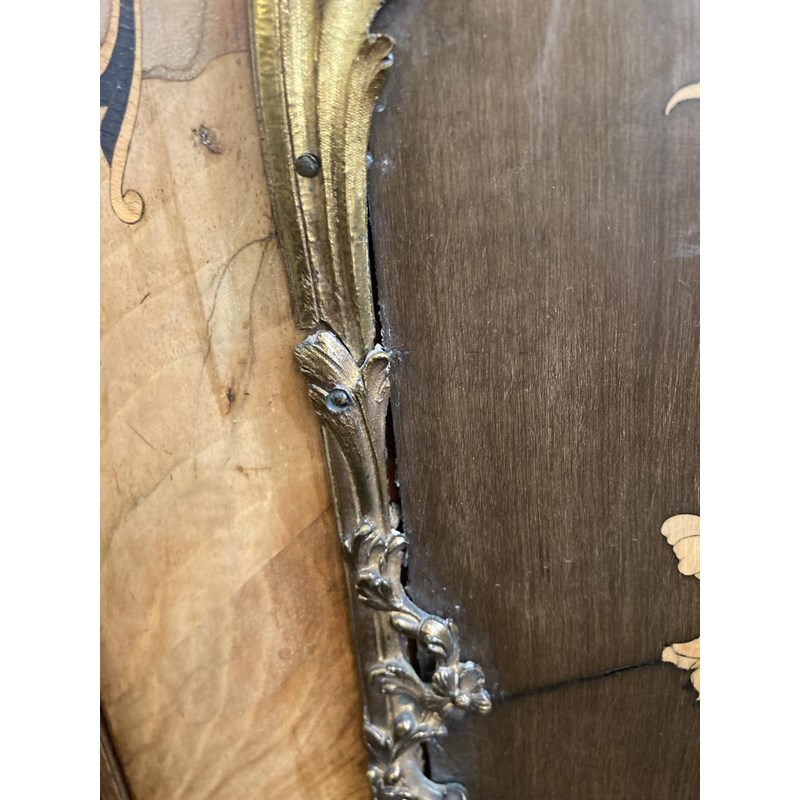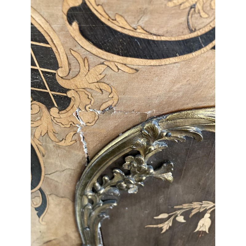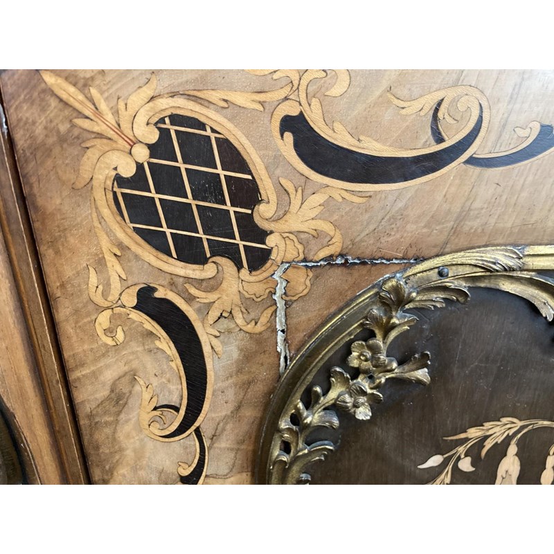Each with rectangular tops with canted front corners above downswept sides with scrolling floral marquetry and gilt brass mounts,above a similar frieze and doors with central panels of marquetry flowers and grasses within a gilt brass rococo revival mount, the doors enclosing interiors with velvet lined shelves, on conforming bases, the sides with four gilt patera. With matching keys, 124cm high, 74cm wide and 40cm deep. One with a paper label for 'T.H. Filmer's Cabinet Chair Upholstery ... 32 Berners Street'.