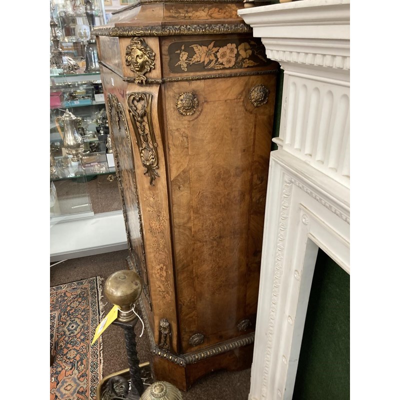 A FINE PAIR OF VICTORIAN WALNUT AND MARQUETRY PIER CABINETS.