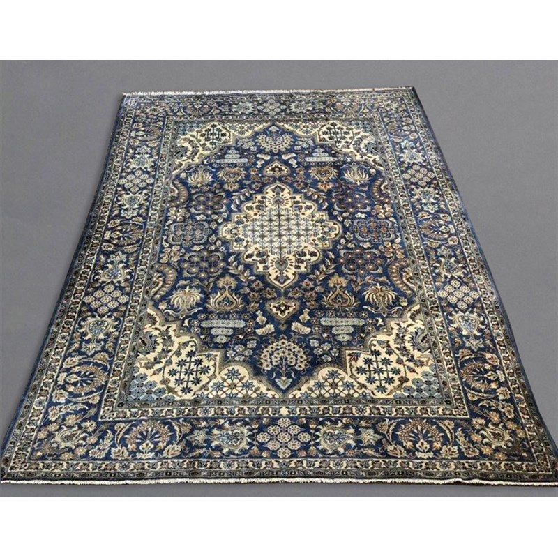 TABRIZ CARPET, NORTH WEST IRAN, CIRCA 1950 The indigo field of flowering plants around an ivory stepped medallion framed by spandrels and floral borders flanked by meandering vine guard stripes, 390 x 290cm