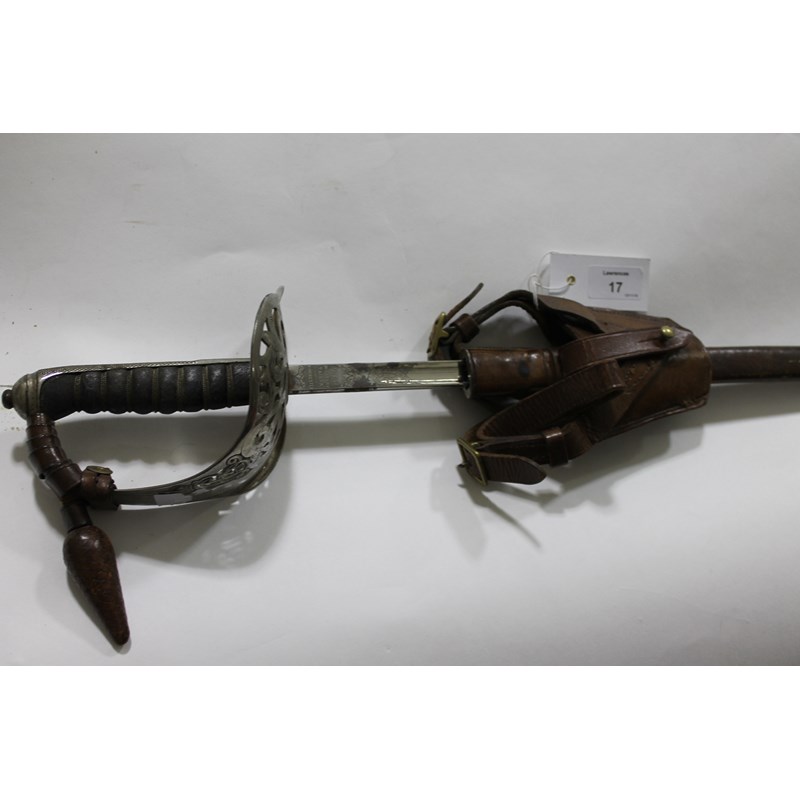 A Levee pattern officers sword, complete with a brown leather field scabbard. Slim clean plated blade marked Flight Military Tailor, Winchester. Plated hilt with EdV11 cypher in the guard, rust evident to the inner section. Blade length of 32.1/2".
