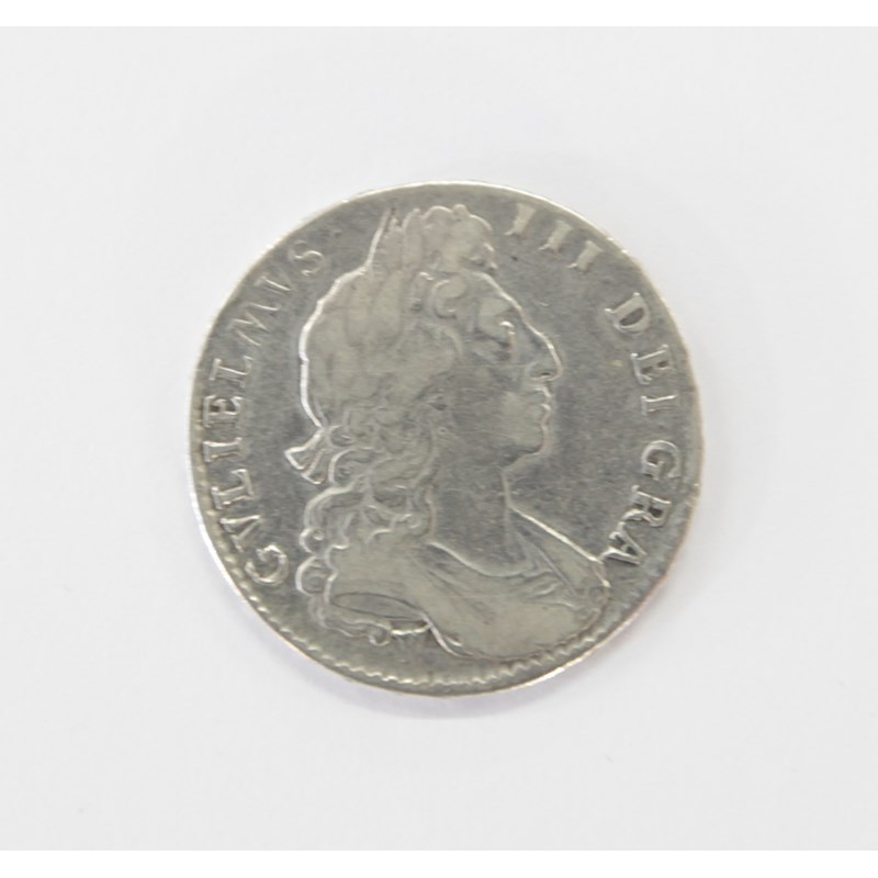 A HALFCROWN PIECE. A William 111 Halfcrown piece dated 1697, with Nono in the edge lettering.
