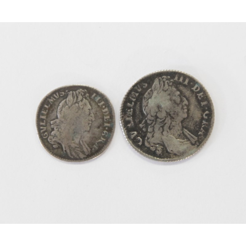 WILLIAM 111 COINAGE. A One Shilling piece dated 1697 and a Sixpence dated 1696.