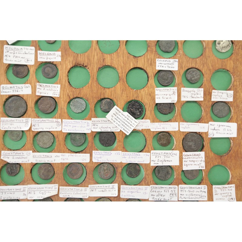 Including examples of Constans, Conmstantine 11 also his wife Helena x 2 with Pax Trier reverse. 2 x Delmalius. one with two soldiers reverse. Constantine 11 Siscia mint, Lyons mint, London mint, etc. Various reverses, also 4 x Crispus again London mint, etc. (39)