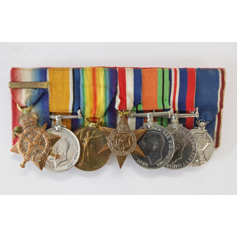 A 1914 Star and bar, named to Lt O G B Philby S L I. British War & Victory Medals, named to Capt O G B Philby. A France & Germany Star, Defence & War medals, unnamed as issued. A 1937 Coronation medal, the seven mounted for wear.