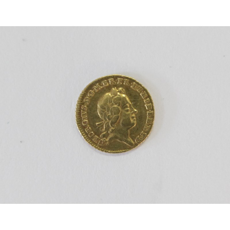A QUARTER GUINEA. A George 1 Quarter Guinea dated 1718, weight 2 grms.