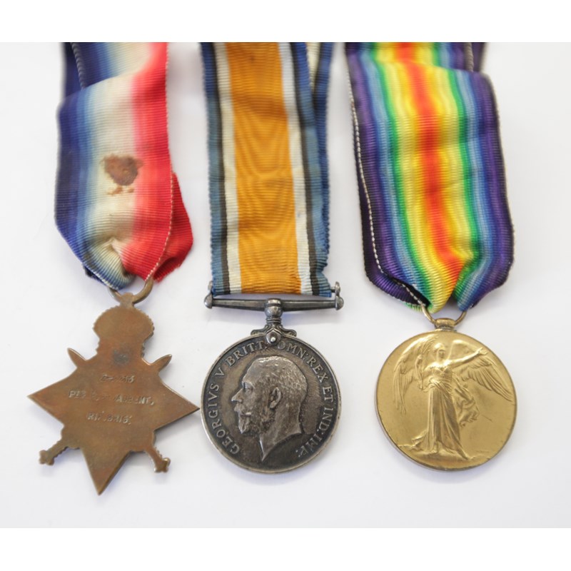 A 1914/15 Star, British War & Victory Medals named to Z-2213 Pte H Broadbent Rif Bge.