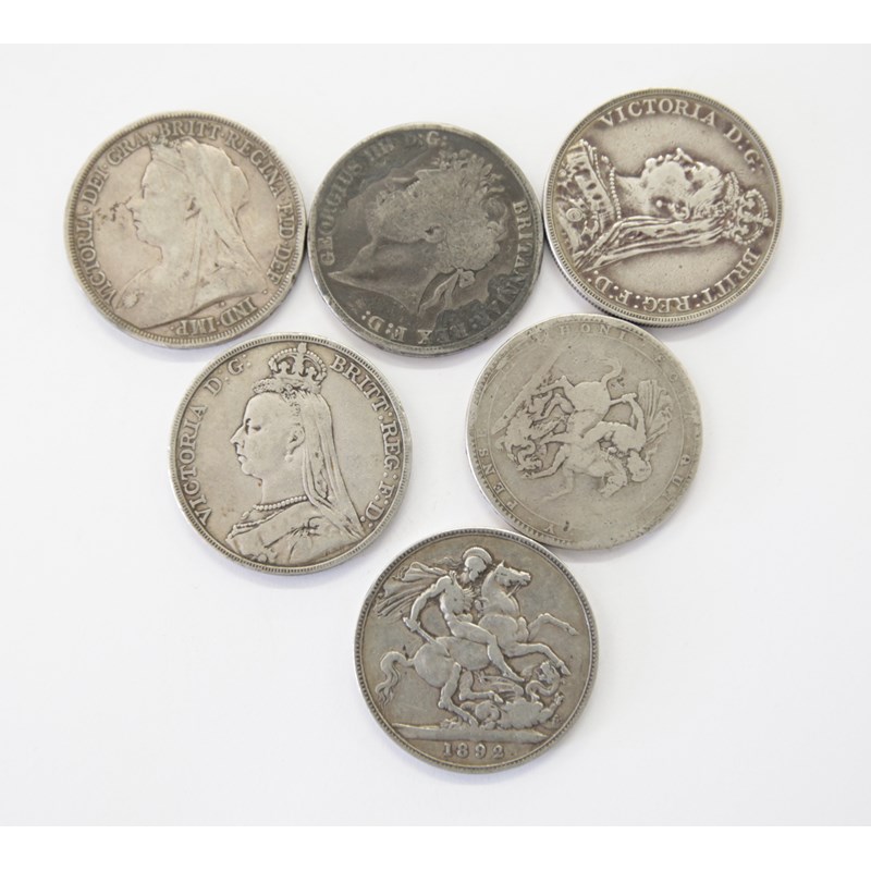 CROWN PIECES. (11) Crown pieces dated 1820-1821-1889 x 3, 1890-1892 x 2-1893-1894 and 1899 in various conditions.