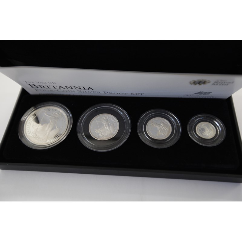 A 2013 BRITANNIA SET. A cased Silver Proof set of four Britannia coins, £2-£1-50p & 20p pieces complete with certificate.