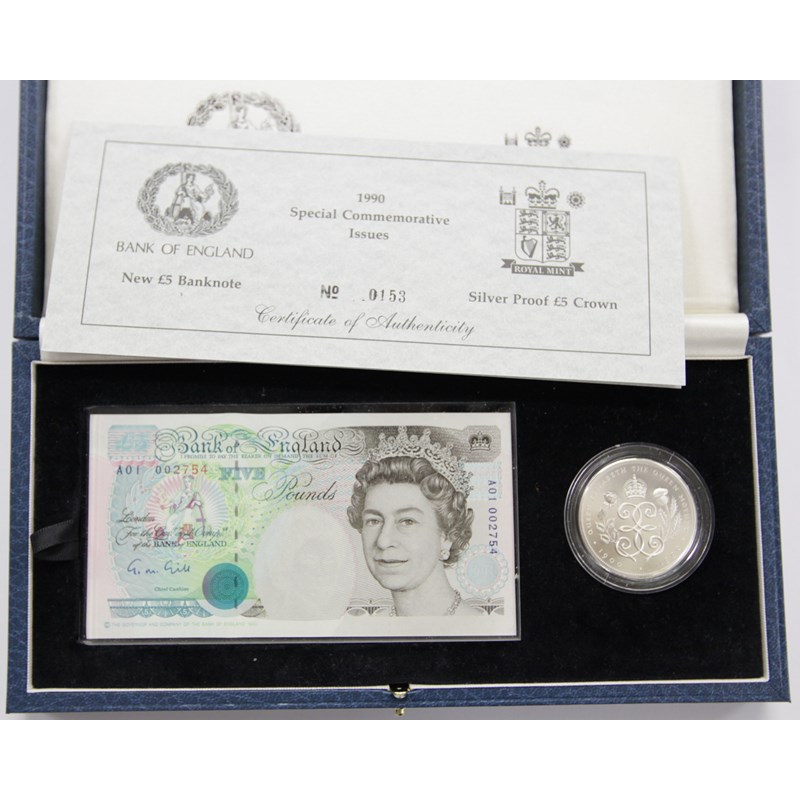 CASED COIN SETS. Including the £5 and Crown (£5) silver proof Ltd edition 1990. Also the £10 and 1992 10p x 2 silver proof set, with certificates.