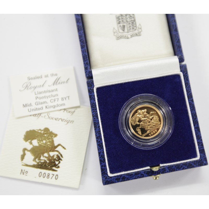 A PROOF HALF SOVEREIGN. A cased Proof Half Sovereign dated 1985, complete with its certificate of issue.
