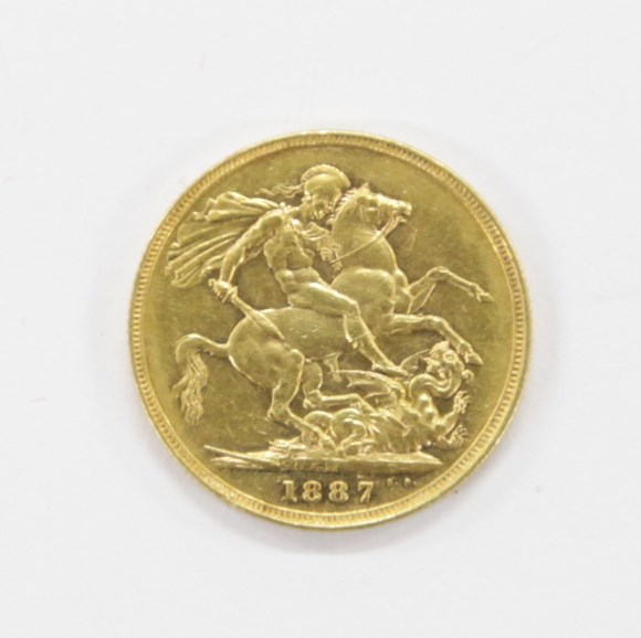 A JUBILEE SOVEREIGN. A Victoria Jubilee Sovereign dated 1887, with 'M' in the field.