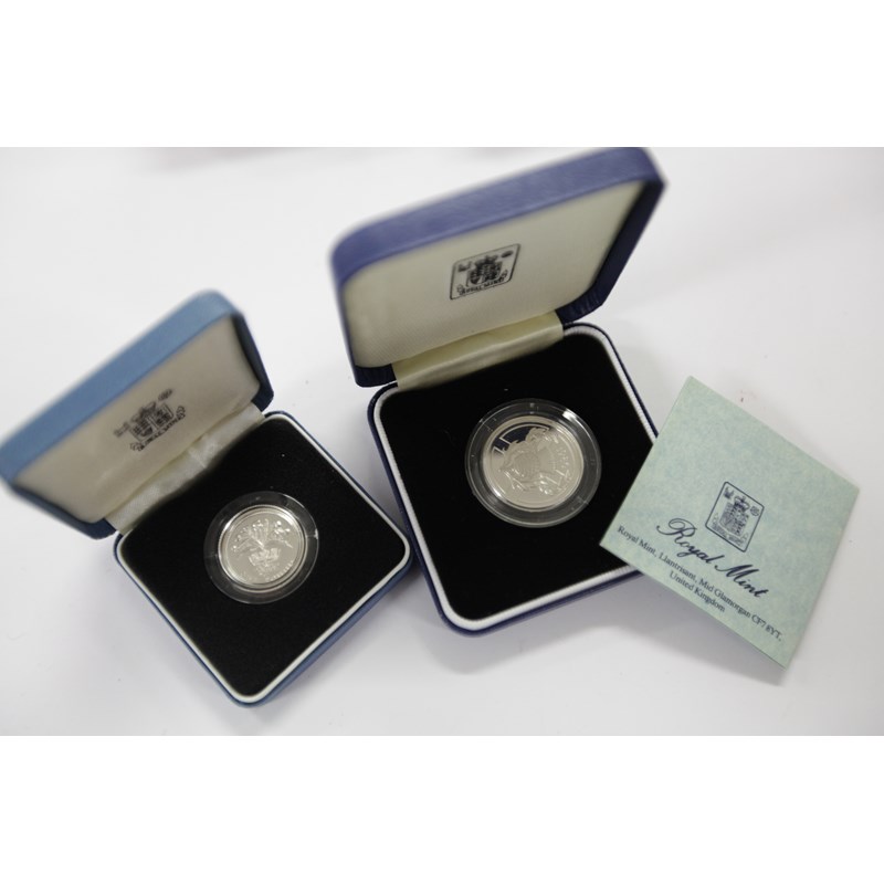 CASED SILVER PROOF COINAGE. Including 1986 and 1989 two coins sets. 1997-1998 and 2004 £2 pieces. £1 pieces of 1983 and 1984-1986- 1992/93. Jersey £1 dated 1998, all with certificates being present. (11).